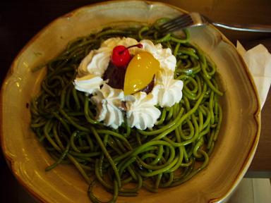 スパゲティにかけられた、きわめて甘い緑色の汁が・・・思い出すだけで(省略